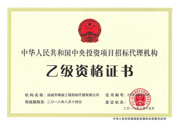 原中央投資項(xiàng)目招標(biāo)代理機(jī)構(gòu)資質(zhì)證書